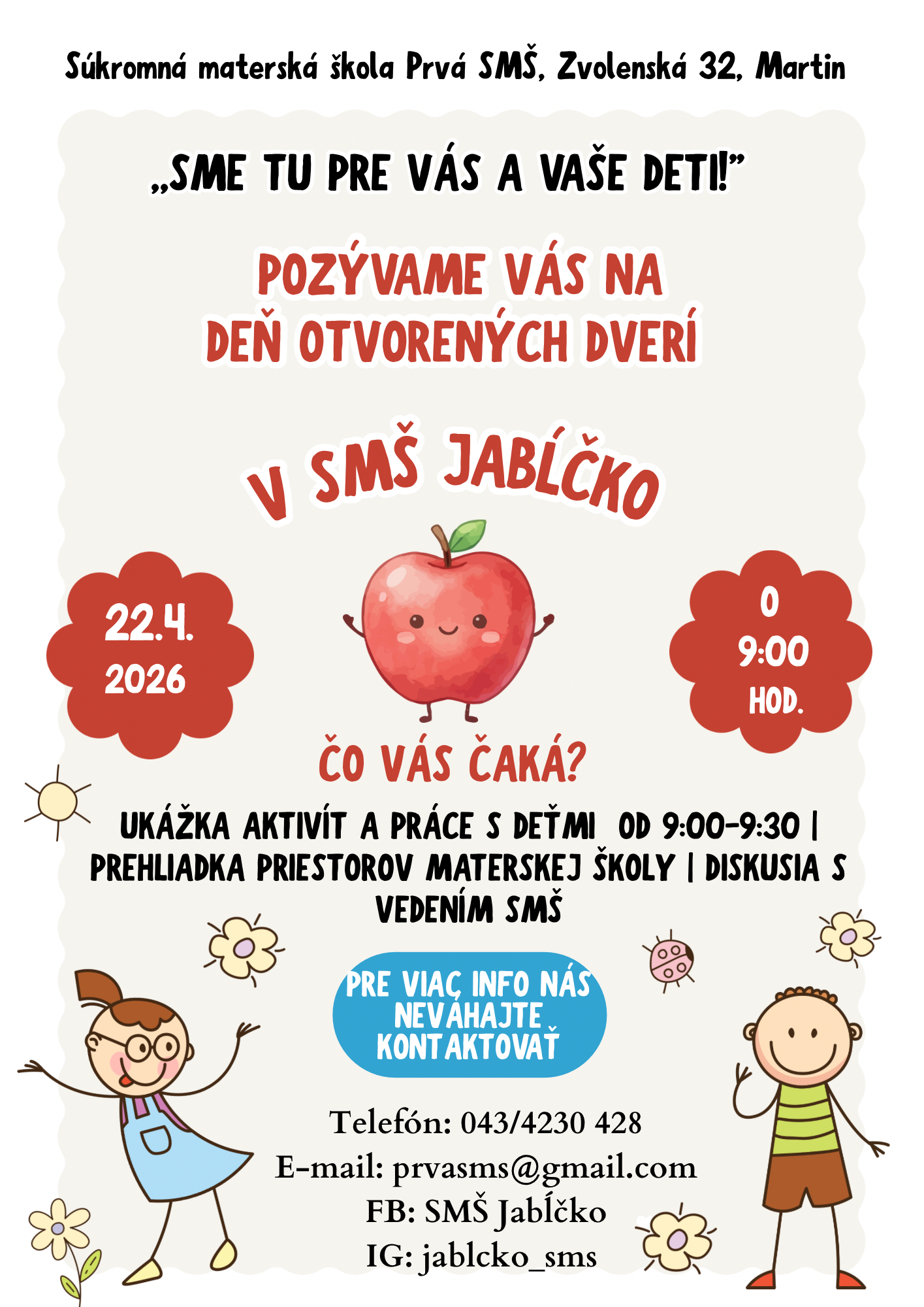 Nástup do škôlky je veľká vec, a to pre dieťa aj rodičov. Dieťa opúšťa známe rodinné prostredie a stáva sa súčasťou kolektívu vrstovníkov. V škôlke platia špecifické pravidlá, hierarchia a režim, na ktorý mnoho detí nie je zvyknutých. Zrazu chýba mama a jej láskyplné pohladenie i zhovievavosť. Nečudo, že je štart v škôlke nielen pre dieťa, ale aj pre rodičov veľmi stresujúci a plný neistoty.